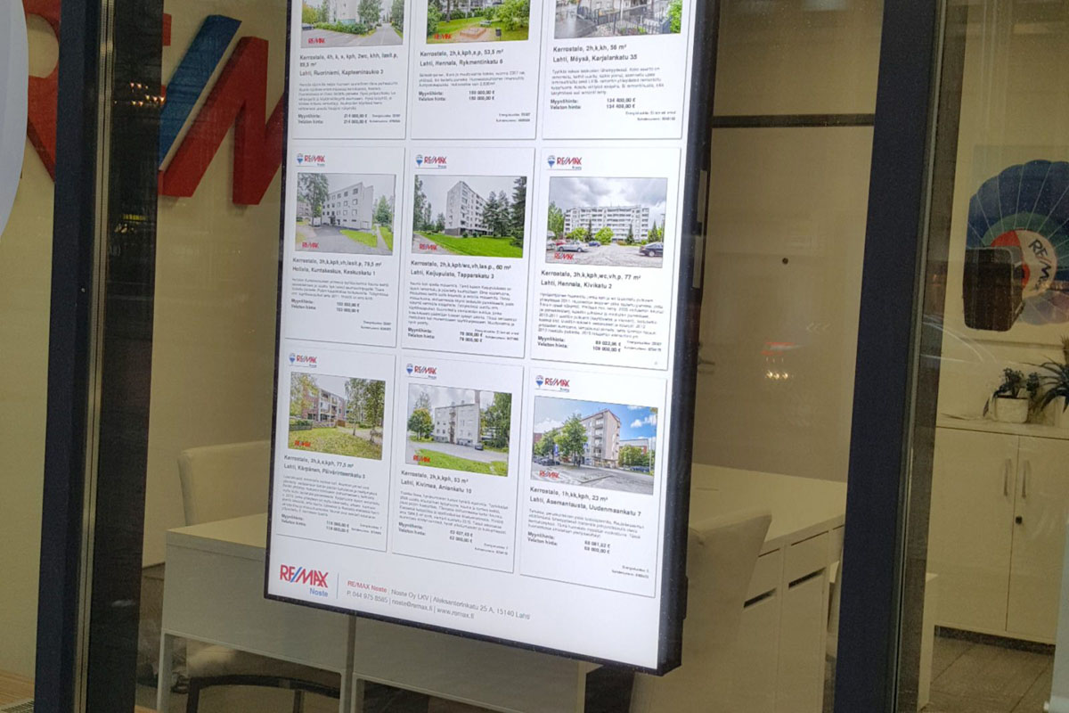 Hyvin sijoiteltu, toimiva ja näkyvä infonäyttö on kuin magneetti, joka vangitsee asiakkaasi katseen tehokkaasti. Kun tämä yhdistetään sisältöön, joka todella palvelee asiakastasi, on yrityksesi huomioarvo käytännössä taattu. Infonäytön avulla yrityksesi voi houkutella asiakkaita tehokkaasti, jakaa ajankohtaisia tarjouksia, ohjata asiakkaita kohteessa ja tuoda esiin brändiään.